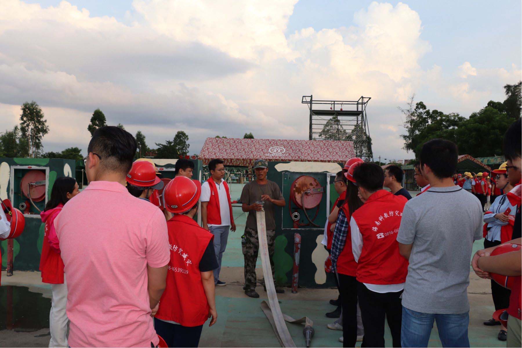 本次演練內容有車輛起火逃生、結繩訓練、高空緩降、滅火器滅火演練、消防栓演練、防煙工具操作學習、煙道火場逃生、心臟復蘇術學習、鋼化玻璃擊碎訓練等全真模擬實戰課程。